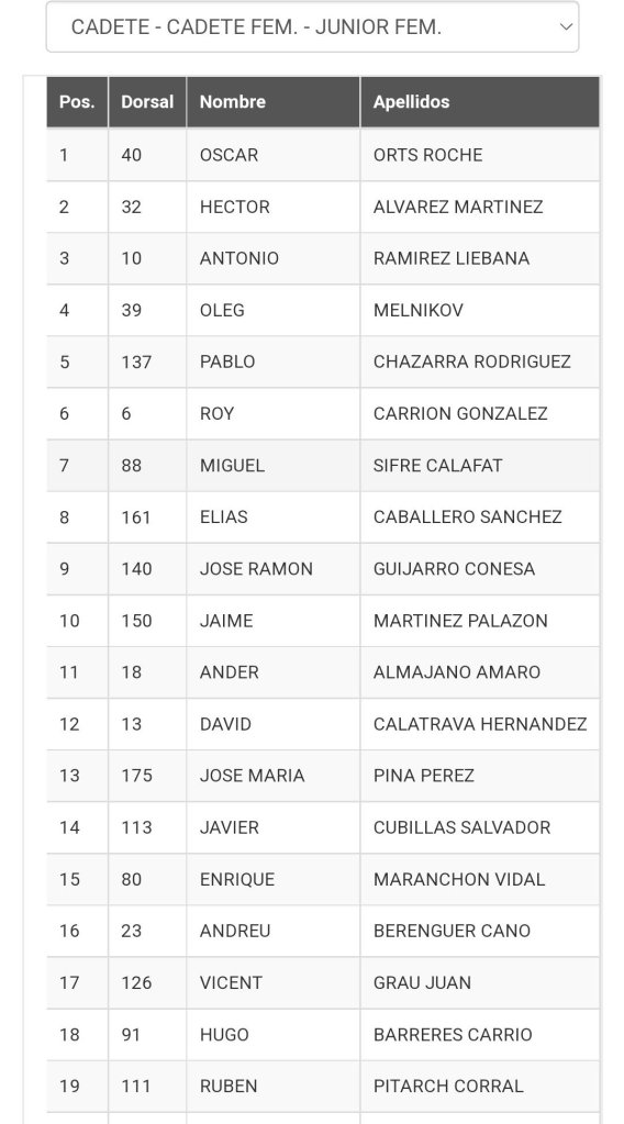 En féminas, Paula Gimeno (Hyunday Koryo) ha sido primera y Aida Rossato (Hyunday Koryo) ha entrado a continuación.