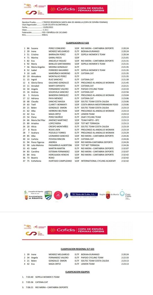 Cristina Barrajón: «Es el primer podio del año y con el equipo. Hacía mucho calor y veníamos cansadas de ayer que también corrimos en Almería. He conseguido meterme en la fuga gracias a mis compañeras de equipo. Estos muy feliz».