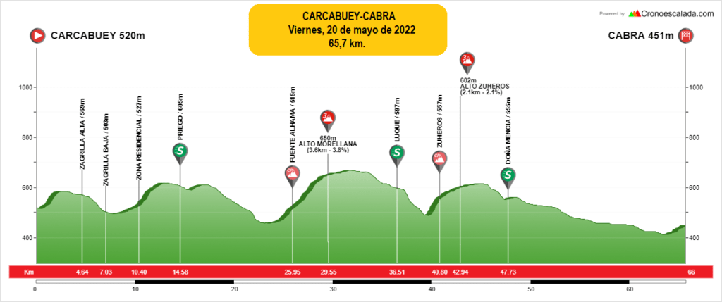 1ª etapa: Viernes 20 de mayo 2022 – 16:30 horas. 65,7 kilometros. Carcabuey-Cabra