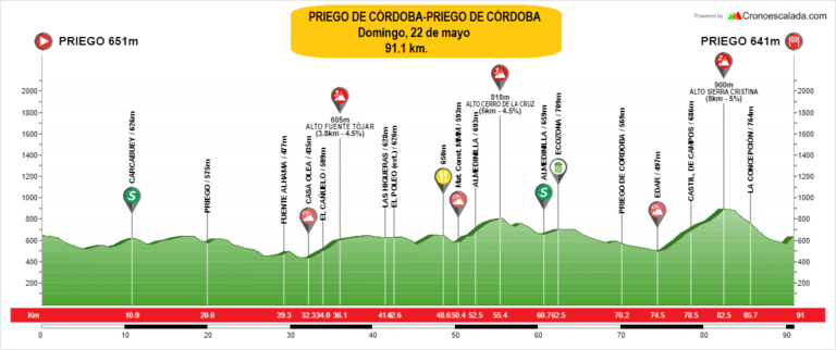 3ª etapa: Domingo 22 de mayo de 2022 – 10:00 horas. 91,1 kilómetros. Priego de Córdoba-Priego de Córdoba.