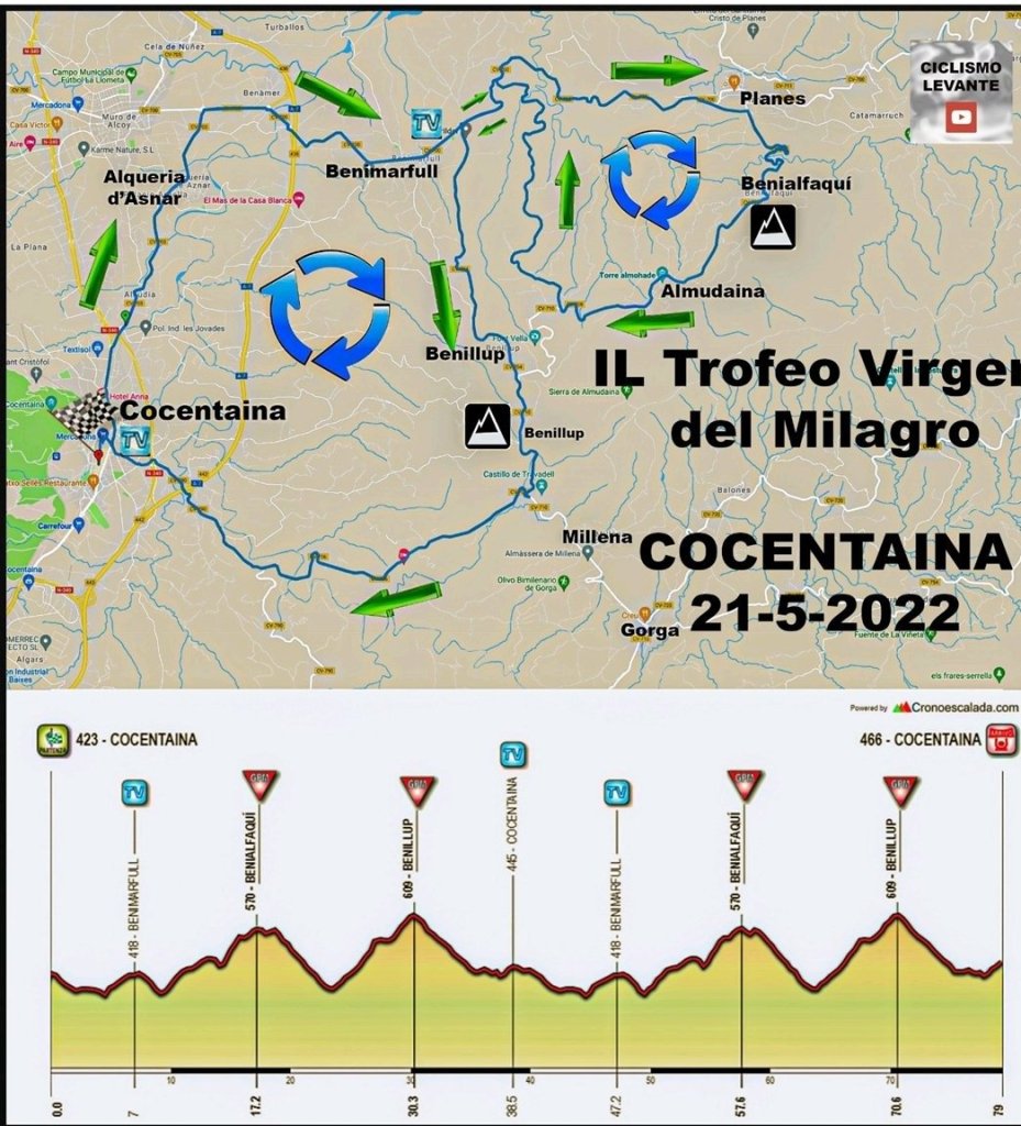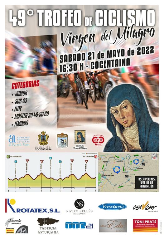 El sábado, 21 de mayo, a las 16:30 horas, se disputa el 49º Trofeo Virgen del Milagro. La prueba está organizada por el CC Contestano y cuenta con 150 ciclistas inscritos. Participa el equipo Brocar Alé, además de José Javier Gil (Esetec) y Jorrit Vanstraelen (Gsport).