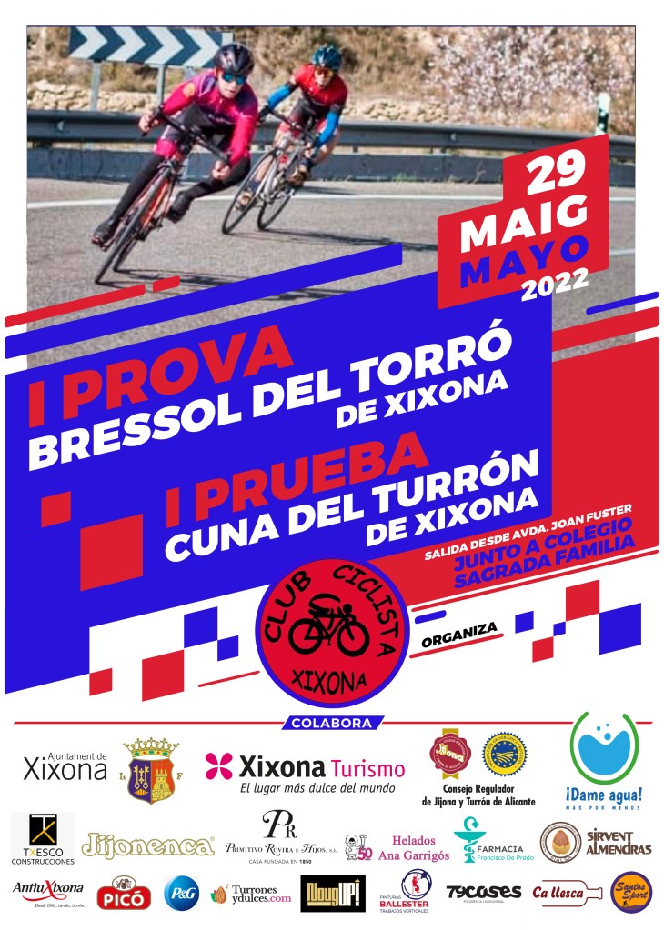 El domingo, 29 de mayo, se disputa la I Prova Bressol del Torró de Xixona. Organizada por el Club Ciclista Xixona se desarrollará en la avenida Joan Fuster, junto al colegido Sagrada Familia, a partir de las nueve.