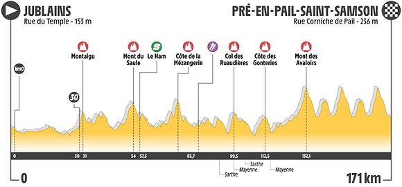 27/05 – 12:25 – 16:40. 2ª etapa: Jublains – Pré-en-Pail-Saint-Samson, 171 km