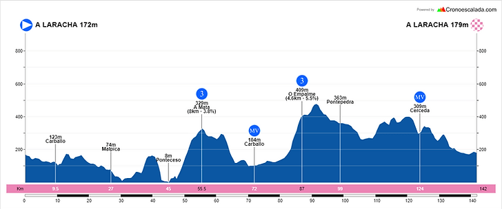 Etapa 2. 28 de mayo. A Laracha-A Laracha / 141Km. 13 horas. Rutómetro