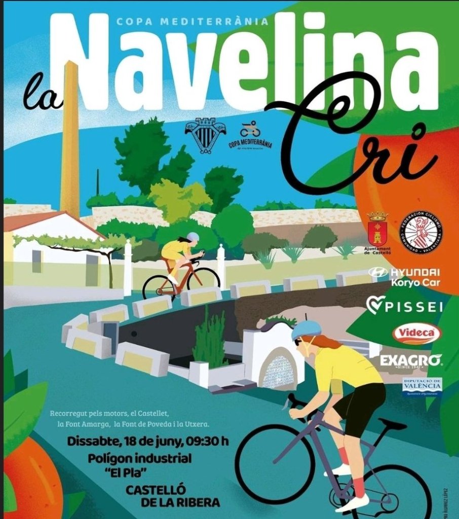 La I edición de la carrera La Navelina de ciclismo femenino, penúltima prueba de la Copa Mediterránea que tendrá lugar en Castelló de La Ribera el próximo 18 de junio ha presentado su novedoso cartel.