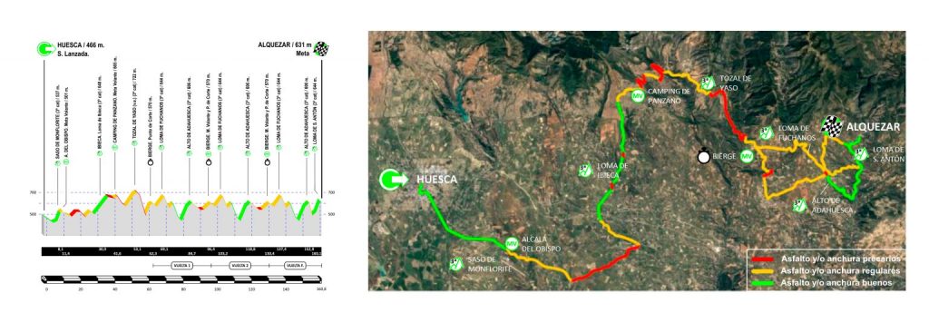 Etapa 2. HUESCA – ALQUÉZAR. 160,8 kilómetros. Rutómetro