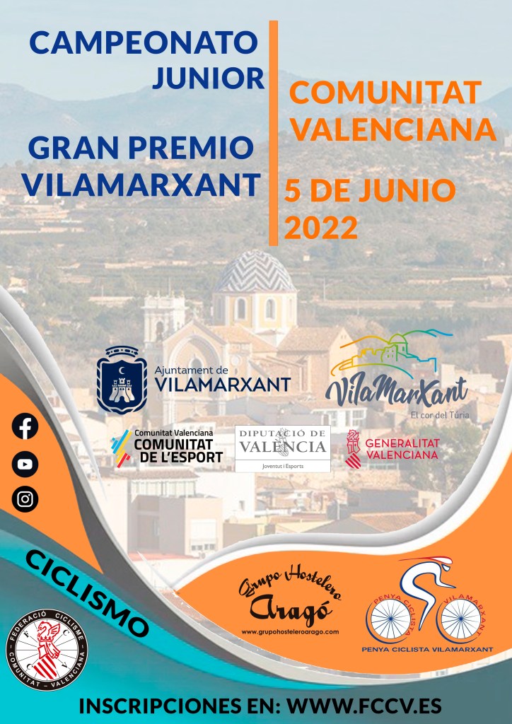El domingo, 5 de junio, se disputa el Gran Premi Vilamarxant. La prueba, organizada por la PC Vilamarxant, pondrá en juego el título de campeón de la Comunitat Valenciana en categoría junior. El banderazo de salida se dara a las 10 horas. LISTA DE INSCRITOS