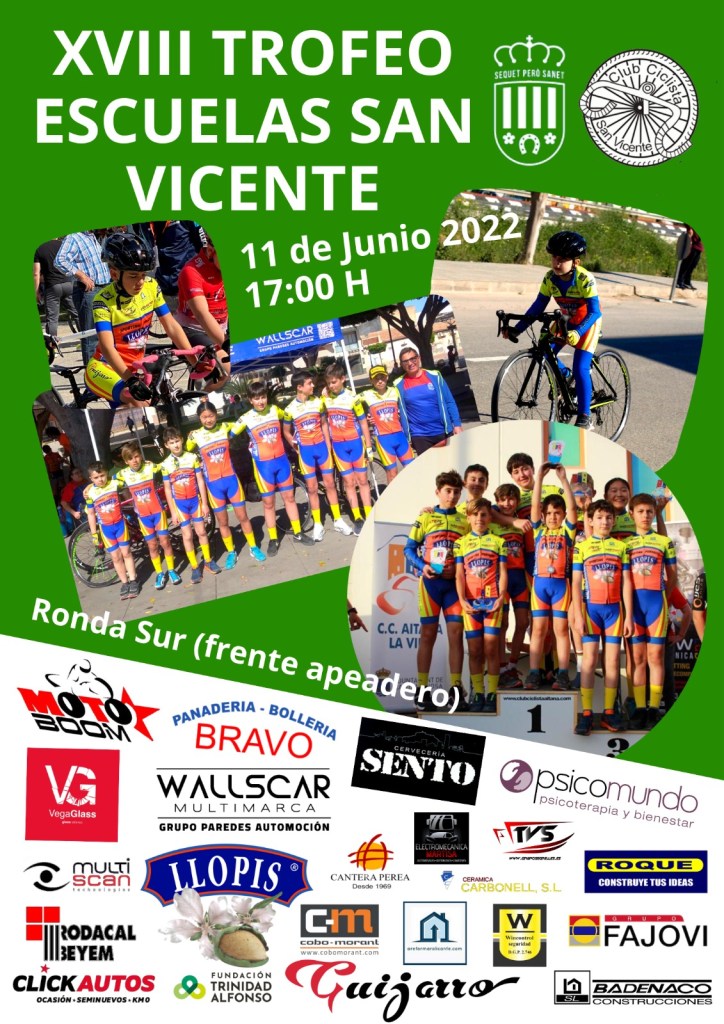 El sábado, 11 de junio, se disputa el XVIII Trofeo de Escuelas de San Vicente del Raspeig. La prueba comenzará a las 17 horas. Hay 141 inscritos.