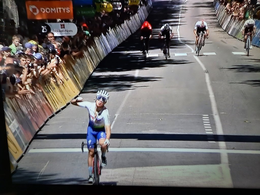 El corredor francés del Team TotalEnergies, Valentin Ferrón, levantó los brazos este viernes al final de la séptima etapa del Critérium du Dauphiné. Su ataque a sus cinco compañeros de fuga, a 700 metros de la línea de meta, le valieron para llevarse su primer ramo en el WorldTour. Pierre Rolland (B&B Hotels-KTM) se hacía con la segunda plaza, mientras que Warren Barguil (Team Arkéa-Samsic) completaba el podio de la jornada.