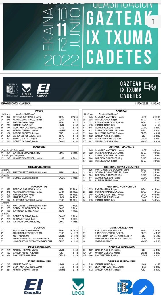 - Domingo 12 de junio: LEIOAKO KLASIKA – 3ª etapa del Memorial Txuma 2022