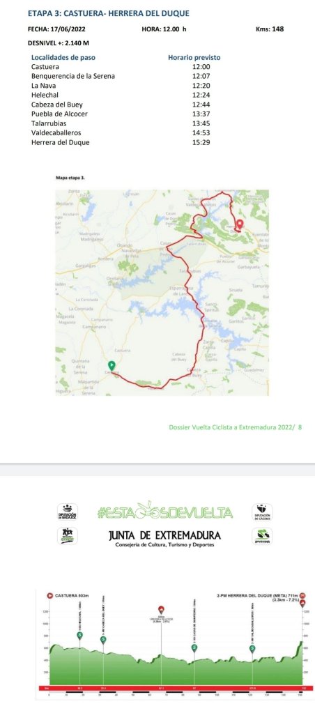 La tercera etapa con 151 kilómetros saldrá el viernes de la localidad de Castuera y recorrerá diferentes puntos de la comarca de la Siberia Extremeña, para finalizar en el Castillo de Herrera del Duque.