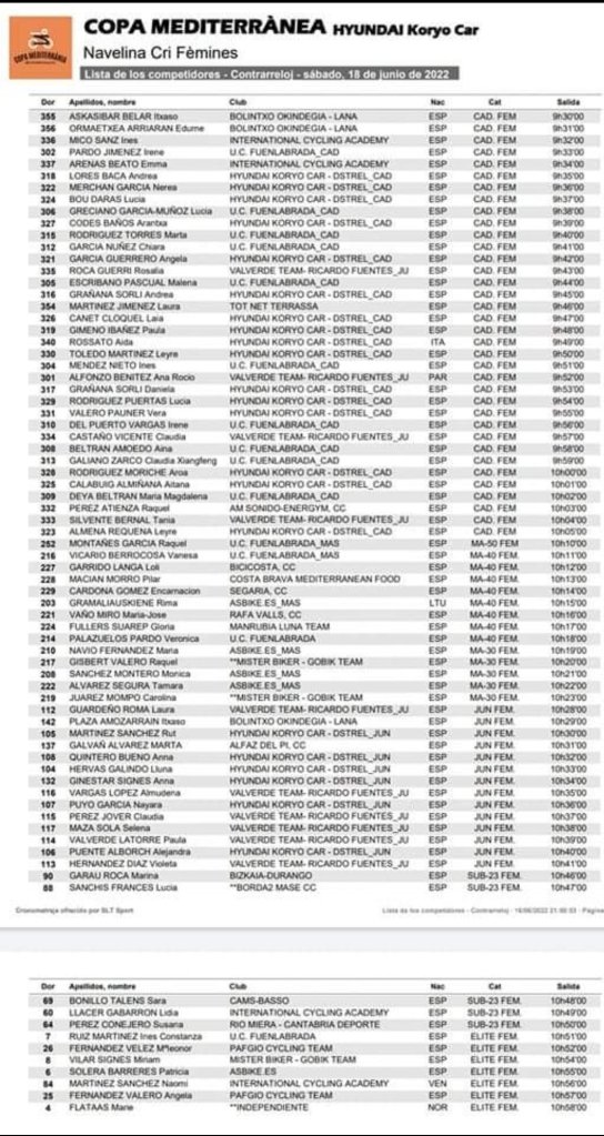 El Club Ciclista Villanova de Castelló ha preparado está prueba con mucha ilusión aunque lamenta que finalmente sean unas 70 ciclistas las participantes en esta penúltima prueba de la Copa Mediterránea.
