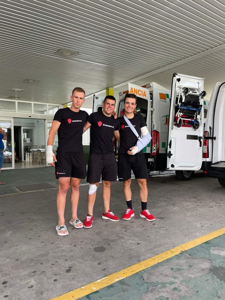 A causa de las lesiones y fracturas provocadas por la caída de ayer en la etapa 2 de la Vuelta a Extremadura los corredores del Equipo Essax Alfonso Campoy, Sergio Soriano y David Torrella no tomarán la salida en la etapa de hoy que llevará al pelotón de Castuera a Herrera del Duque tras 152 kilómetros de recorrido. Sí está en carrera Charlie Beake (Brocar Alé), que tuvo abrasiones tras la caída.