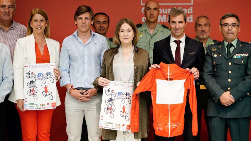 La XXXIV edición de la Vuelta Ciclista a la Comunidad de Madrid tendrá lugar entre los días 20 y 24 del próximo mes de julio y transcurrirá prácticamente en su integridad por territorio regional. Así lo ha explicado hoy la consejera de Cultura, Turismo y Deporte, Marta Rivera de la Cruz, en la presentación de esta competición, que cuenta con la colaboración del Gobierno autonómico, y en la que también han participado el presidente de la Federación Madrileña de Ciclismo, José Vicioso, así como los alcaldes de las localidades por las que trascurre el trazado y algunos de los deportistas participantes.