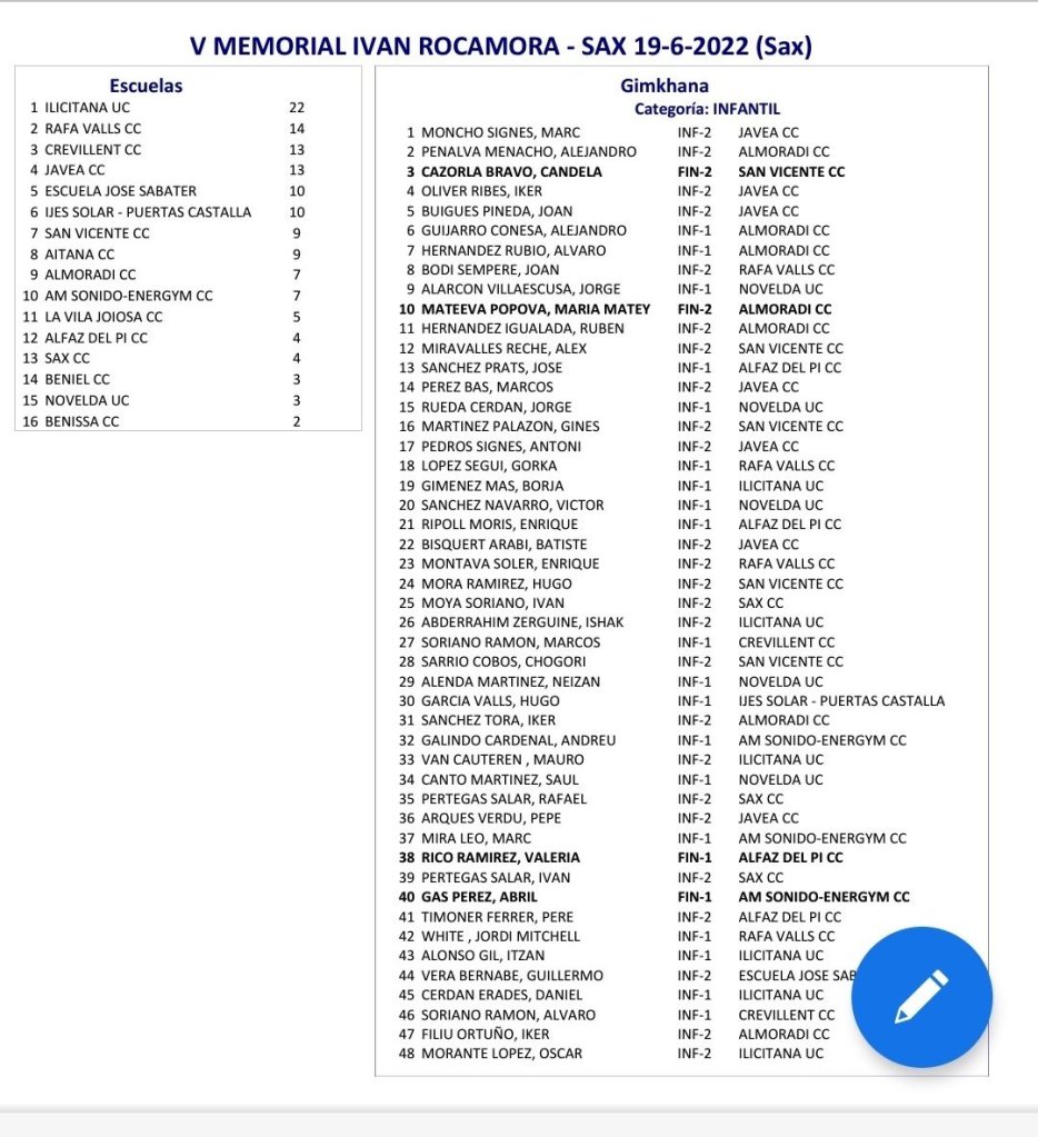 - Cocentaina. II Rafa Valls de Escuelas. Clasificaciones