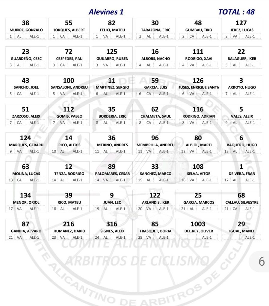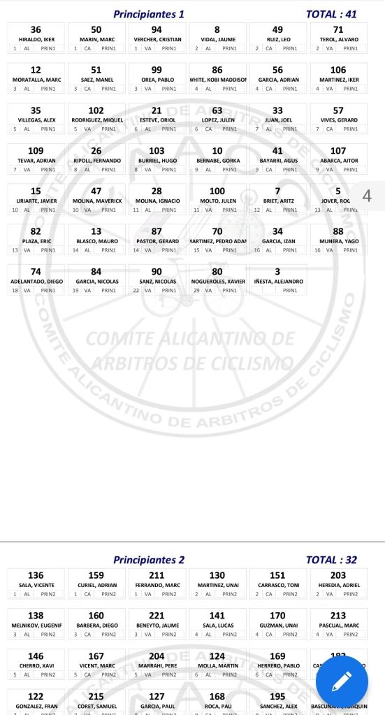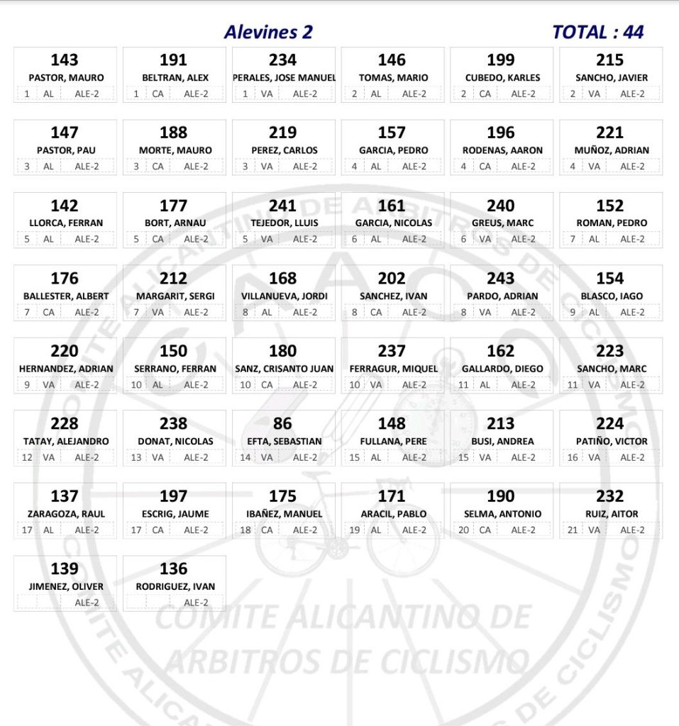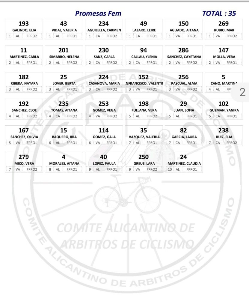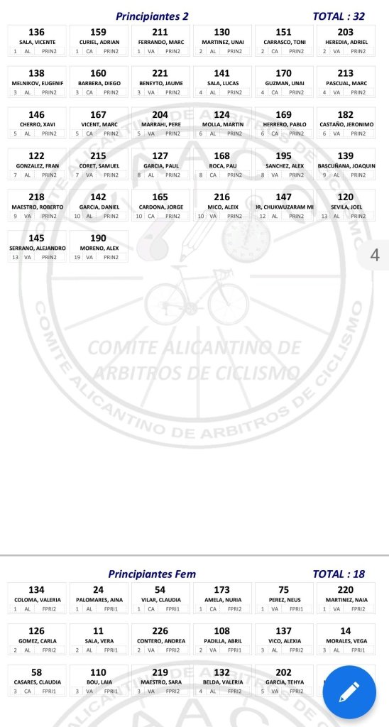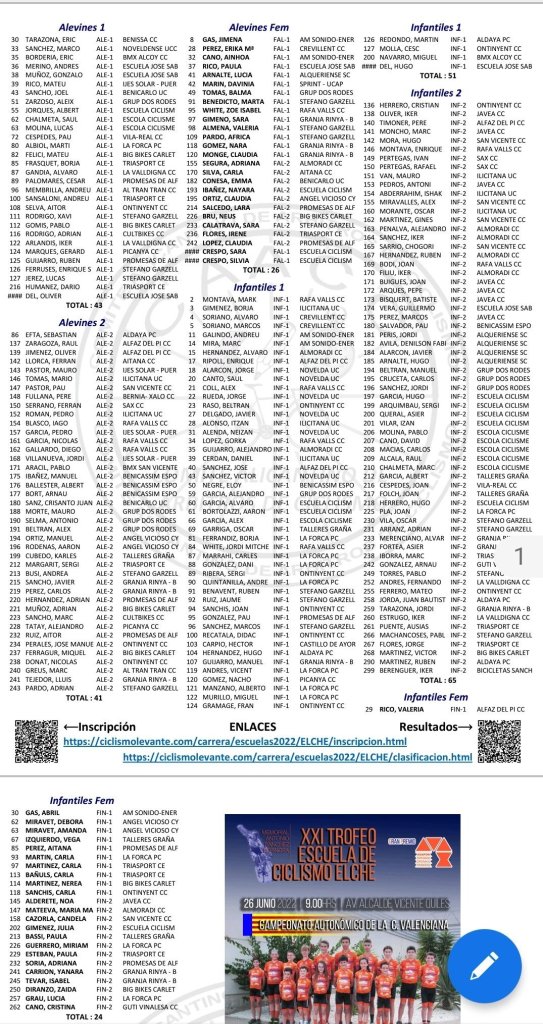 Los enlaces para las clasificaciones en directo e inscripciones provisionales (se irán actualizando), facilitados por Ciclismo Levante serán estos: