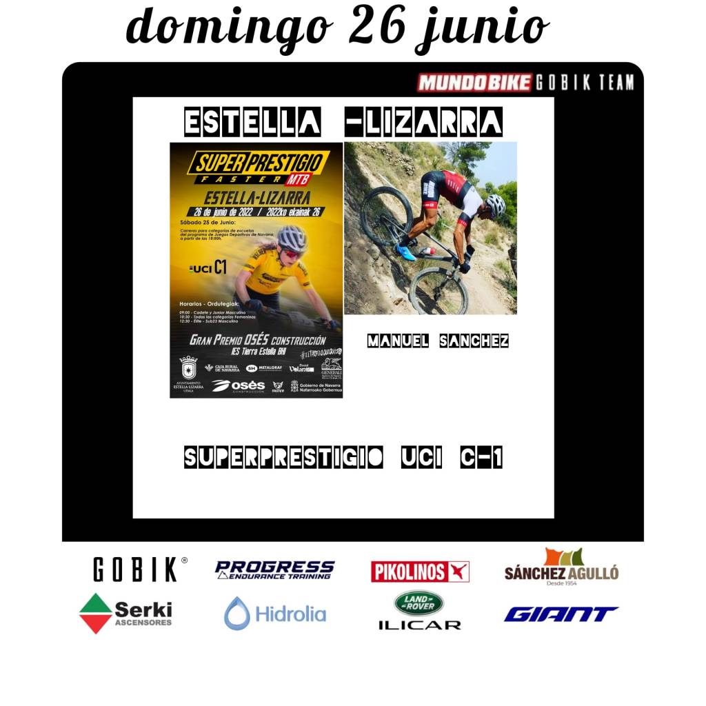 El Superprestigio MTB toca a su fin con la disputa el domingo, día 26 de junio de la prueba en Estella-Lizarra. Tras las carreras de Elda, Caparroso y Tibi la competición tiene su punto y final en tierras navarras con la presencia de una amplia representación de bikers alicantinos. Llegan como líderes Ismael Esteban y Estibaliz Sagardoy, en élite con Elena Lloret, segunda; Miguel Díaz y Estibaliz Sagardoy, en Sub 23, con Juan Estevan, segundo y Fernando Vilaplana, cuarto; Vicent Zaragoza y Carla Pérez, en júniors, con Vania Rico y Sandra Jover, segunda y tercera respectivamente; y Javier López y Sofía Losarcos, en cadetes. Entre los participantes estará Manuel Sánchez Aldeguer.