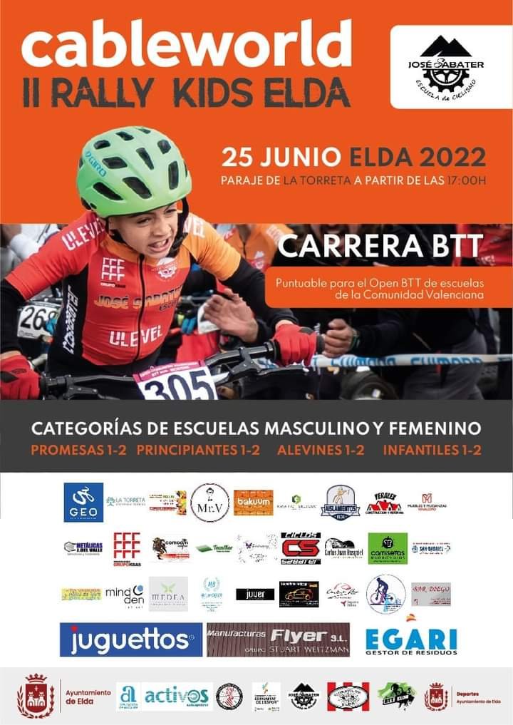 El sábado se disputa en Elda el II Rally BTT XC Kids Cableworld. La competición, que se disputa en el paraje de la Torreta, se iniciará a las 17 horas y en ella participarán las ocho categorías de Escuelas previstas. Englobado dentro del Open de BTT de Escuelas de la Comunidad Valenciana está organizada por la Escuela de Ciclismo José Sabater.