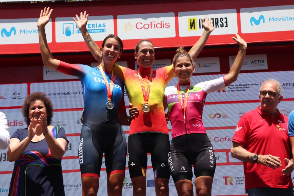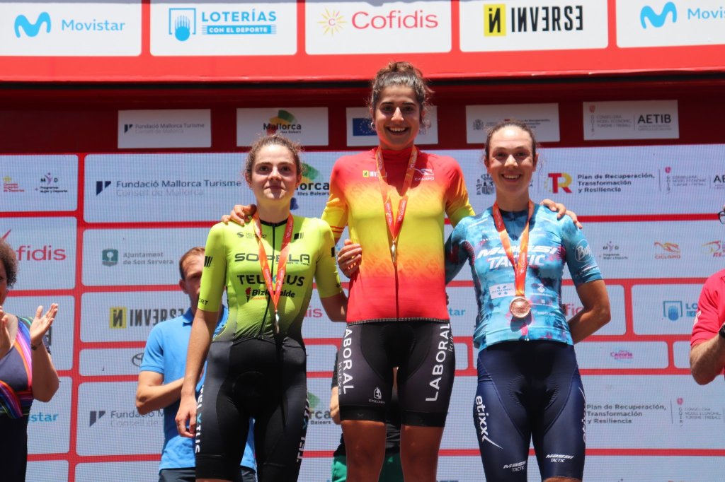 Exhibición de Mavi García en el Campeonato de España de Carretera Élite-Sub23. En las tierras mallorquinas, las mismas que vieron nacer hace 38 años, la corredora del UAE TeamADQ ha entrado en solitario en meta y se ha colgado el oro. Cuarto título Nacional de ruta. Abrió hueco en las rampas del Coll de Sa Creu y sólo pudo aguantar Anne Santesteban, hasta que levantó el pie y dejó ir a Mavi. La emoción ha estado en el reparto de las otras dos preseas. En el grupo de atrás iban Sandra Alonso, Mireia Benito, Sara Martín, Anne Santesteban, Idoia Eraso, Irene Méndez, Naia Amondarain y Patricia Ortega. Sandra Alonso (Ceratizit), fue la más rápida y conquistó la plata. La torrevejense ha sido muy superior a sus rivales en esos metros finales. Se dejó caer y luego atracó por la derecha y no tuvo rival.