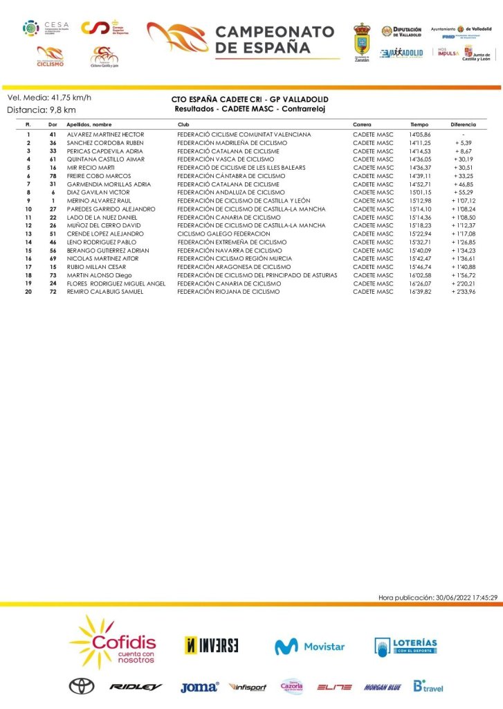 Héctor Álvarez: «Ha sido una crono muy igualada que no se ha decidido hasta en el último kilómetro. Sabía que era complicado el triunfo, pero me he sentido bien y estoy contento. La verdad es que venía bien, pero no esperaba ganar. ¿Opciones en la de ruta? Sólo depende de lo rápido que se vaya. Tenemos una Selección fuerte y estoy seguro de que lo vamos a hacer genial».