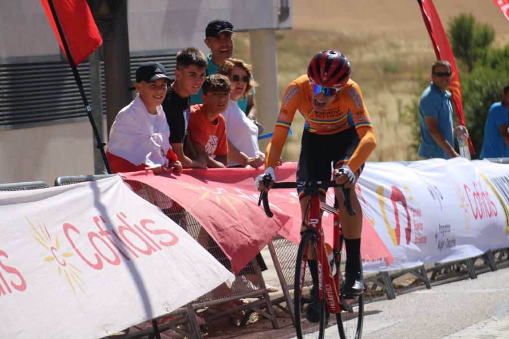 Héctor Álvarez ha logrado esta tarde una medalla de oro para la FCCV en los Campeonatos Escolares que se están disputando en Valladolid. El benidormense ha sido el mejor en la contrarreloj individual de cadetes. Rubén Sánchez (Federación Madrileña) termina segundo y Adriá Pericas (Federación Catalana), tercero. En apenas nueve segundos han quedado los tres primeros clasificados. Martí Mir, del Saxun, ha finalizado quinto.