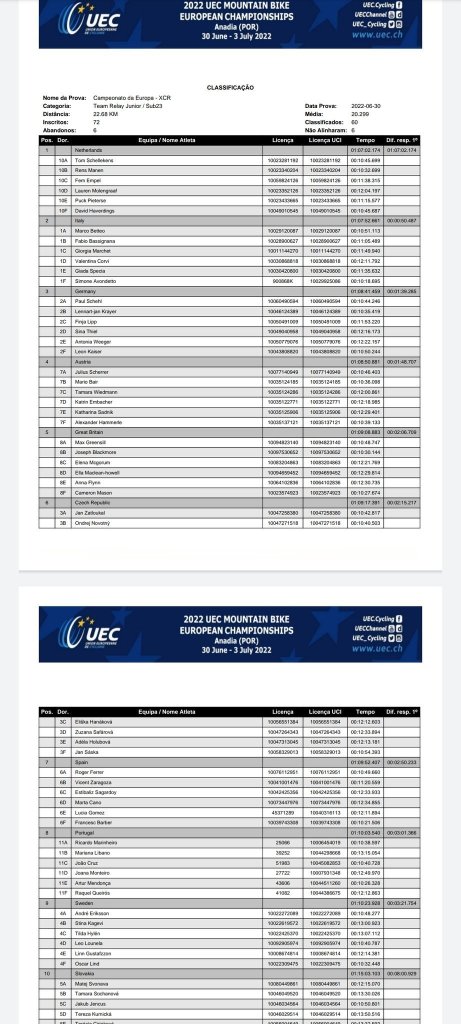 Las carreras de XCO, las únicas exclusivas para sub-23 y sub-19, se reservan para el sábado y el domingo. Mañana corren los más pequeños, los chicos a las 11:00 y las chicas a las 14:00. En dichas competiciones estarán tanto Carla Pérez como Vicent Zaragoza.