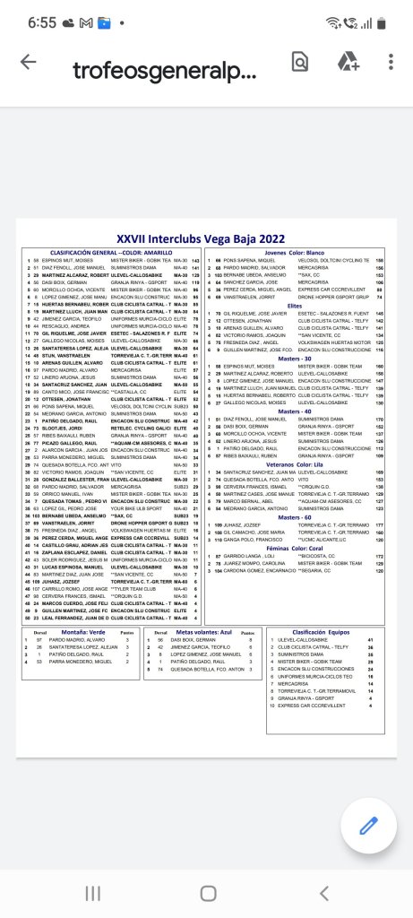 Espinós es el líder, con José Manuel Díaz Fenoll segundo, y, Roberto Martínez (Ulevel), tercero. Los líderes por categorías son: Miquel Pons (Jóvenes); José Javier Gil (Élite); Moisés Espinós (M30); José Manuel Díaz Fenoll (M40); Juan Manuel Santacruz (M50): Jozsef Juhasz (M60); y Loli Garrido (Féminas). Álvaro Pardo domina el premio de la montaña, Germán Dasi el de las metas volantes y el Ulevel Callosabike lidera la clasificación por escuadras.