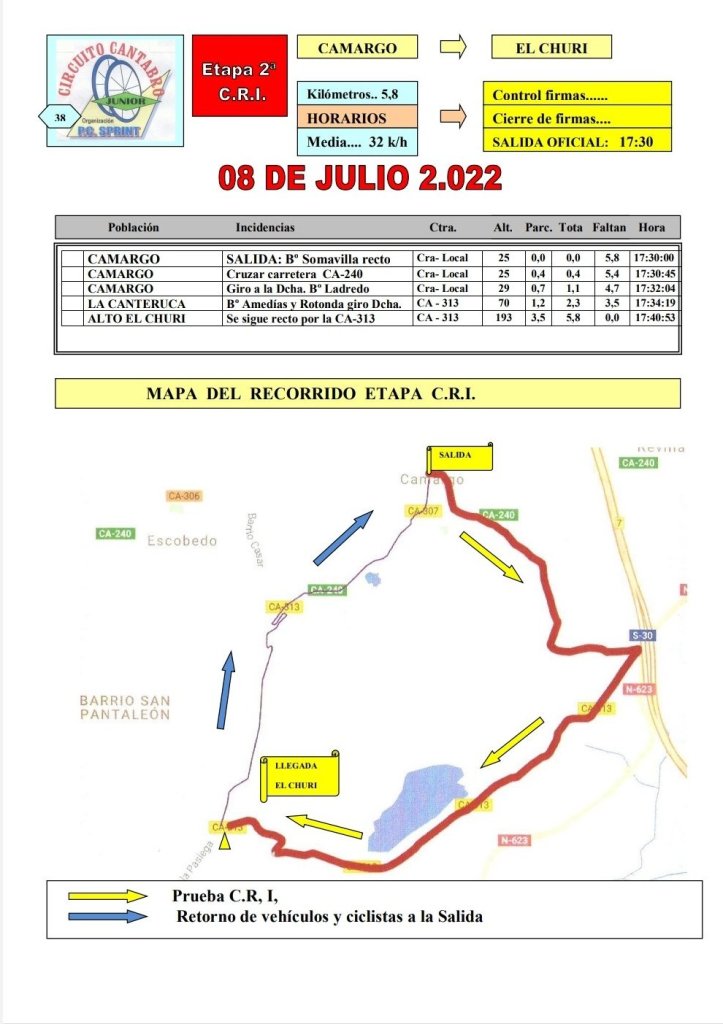 Etapa 2. 8 de julio. CRI. Camargo-Alto El Churi. 17.30h. 5,8km.
