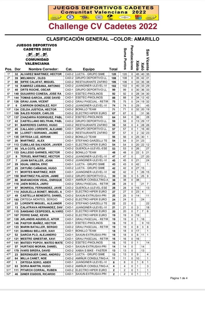Roy Carrión (JuanGiner) se ha adjudicado el II Criterium San Vicente del Raspeig de corredores cadetes. José David Tomás (Esetec Pikolinos) ha terminado segundo y Alejandro Callado (GD Llopis), tercero. Miquel Sifre (Zafiro) ha terminado cuarto; Héctor Álvarez (Lucta-Grupo Sime), sexto; Óscar Orts (GD Llopis), octavo; y Oleg Melnikov (GD Llopis), décimo. En féminas, Claudia Xiangfeng (Fuenlabrada) ha terminado primera. Héctor Álvarez sigue liderando la Challenge de la CV en la categoría cadete por delante de Oleg Melnikov y de Miquel Sifre.