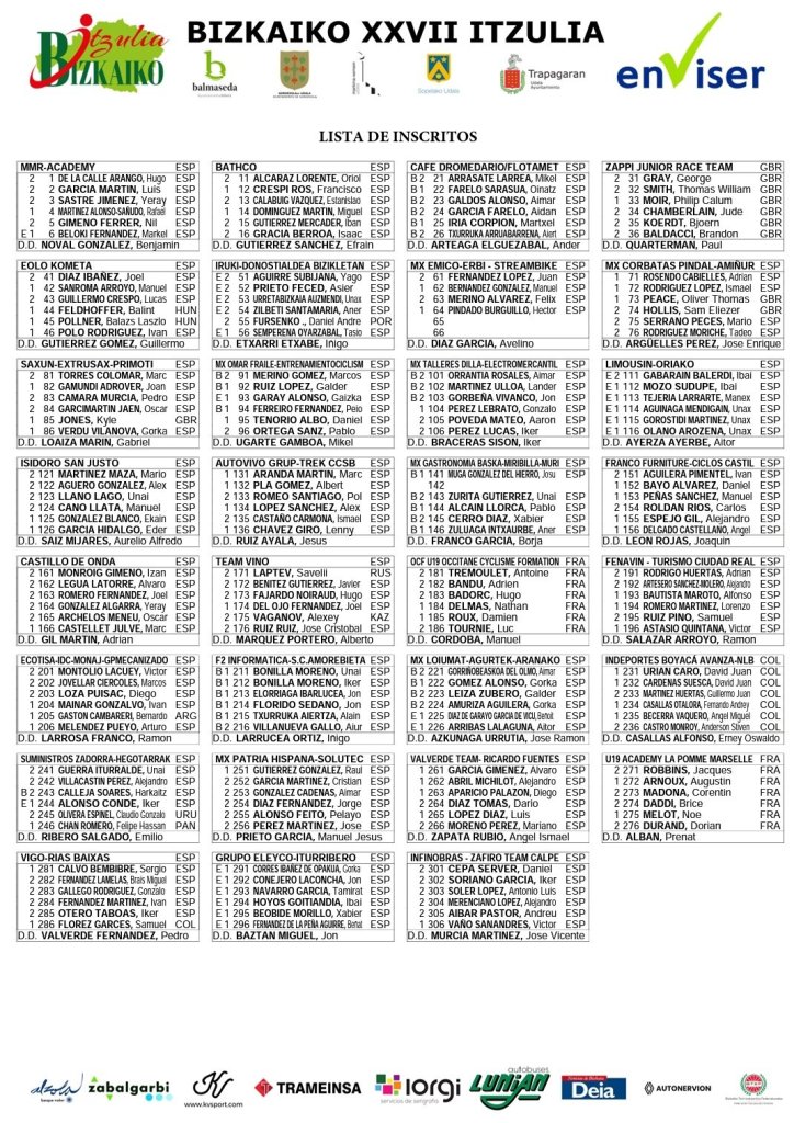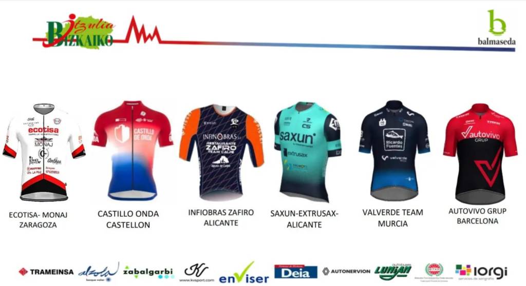 La Bizkaiko XVII Itzulia júnior comienza el jueves con la presencia de los equipos alicantinos Essax Extrusax Primoti e Infinobras. Los sajeños saldrán con Pedro Cámara, Óscar Garciamartín, Marc Torres, Joan Gamundi, Gorka Verdú y el británico Kyle Jones, que debuta con su nueva escuadra. Gabriel Loaiza y Cipriano Bernabé dirigirán a los chavales. Por su parte, Luis Gerardo Álvarez cuenta para esta competición con Dani Cepa, Andreu Aibar, Víctor Vaño, Antonio Luis Soler, Iker Soriano y Alejandro Merenciano. Finalmente, Aarón Poveda, del Guijarro, correrá con la escuadra vizcaína Talleres Dilla.
