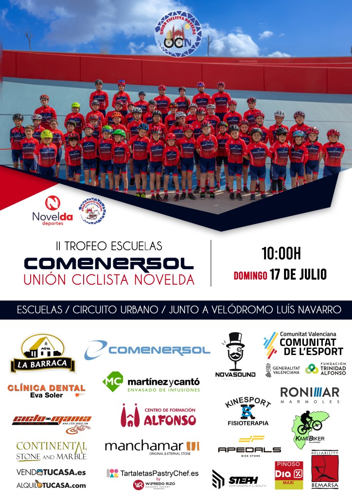 El domingo, día 17 de julio, se celebra el II Trofeo de Escuelas COMENERSOL- UNION CICLISTA NOVELDA, prueba comprendida dentro del calendario provincial y que recorrerá la Avenida Cortés Valencianas, de rotonda a rotonda, de la localidad noveldense. Acudirán a la cita 178 niños. La competición se iniciará a las diez.