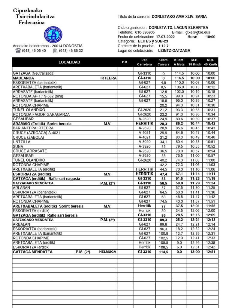 Jaume Guardeño (Filial Caja Rural-Alea) disputa hoy en Leintz-Gatzaga la Dorletako Ama XLIV Sari Nagusia. Cuarta prueba del Torneo Lehendakari en la que se pasa hasta en tres ocasiones por el mítico alto de Salinas (Gatzaga), que acabará por determinar al ganador en su última ascensión con la meta en la cima.