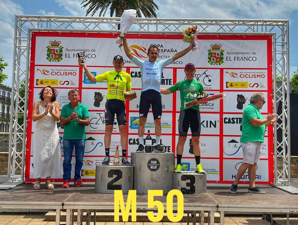 El concejo asturiano de El Franco ha acogido este fin de semana la disputa de la última prueba de la Copa de España Máster de Carretera 2022, donde el máster 40 José Carlos Canelo se ha impuesto a sus rivales sobre el recorrido de 89,8 km con 1.200 metros de desnivel acumulado, haciendo gala de un increíble poderío. Tras el arduo ascenso al Alto de la Rebollada, que se ha antojado clave para la resolución de la cita, sus acompañantes en el podio fueron el también máster 40, Isidro García; y el primer Máster 30 en llegar, Damián Ramos, entrando ambos a menos de 10 segundos del ganador.