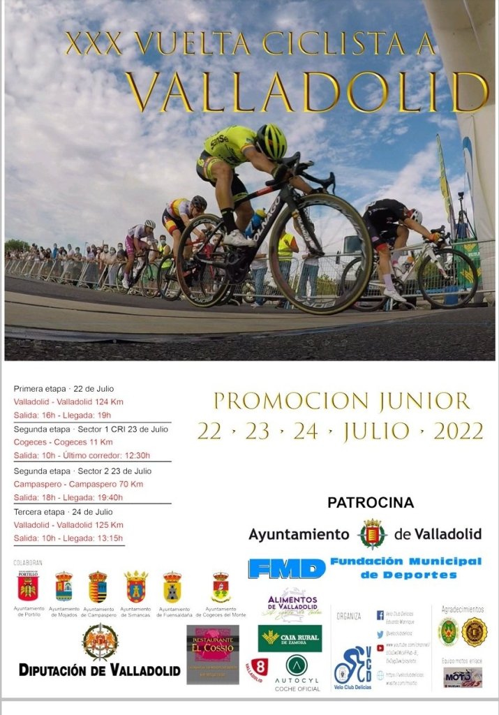 La XXX Vuelta Ciclista a Valladolid de la categoría júnior se disputa los días 22, 23 y 24 por tierras pucelanas con la presencia de los equipos alicantinos Saxun Extrusax Primoti, Infinobras Calpe y Guijarro Sporting Pursuits. Los sajeños competirán con Joan Gamundi, Adan Bortolazzi, Pedro Cámara, Kyle Jones, San Hodge y Jaume Muñoz, con Javier López y Cipriano Bernabé como directores. Por su parte, los calpinos lo harán con Alejandro Baviera, Alejandro Merenciano, José Segura, Mario Álvarez, Jordi Ritchmond y Enric Rodríguez. Por su parte, la escuadra de San Vicente pondrá en liza a Aarón Poveda, Carlos Ortega, Pablo Rodríguez, Mario Lozano, Jaime Murcia y Sergio Hernández. José María Gutiérrez y Pablo López mandarán desde el coche.