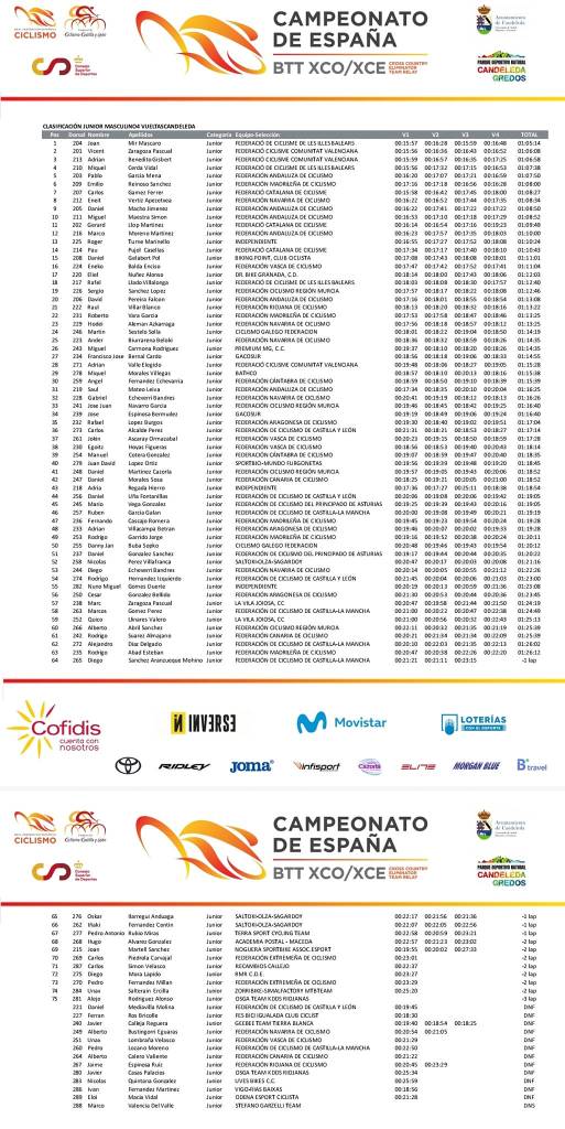 En féminas, Marta Cano ha sido la ganadora en la categoría júnior por delante Dura Rodríguez y Uxía Soto. Vania Rico ha sido séptima; Sandra Jover, octava; y Carla Pérez no ha terminado ya que ha sufrido una caída. Iba segunda, con 20 segundos de ventaja sobre la tercera, y se ha ido alsuelo.