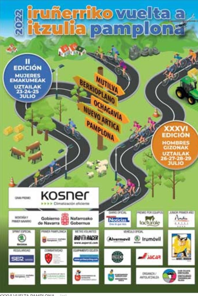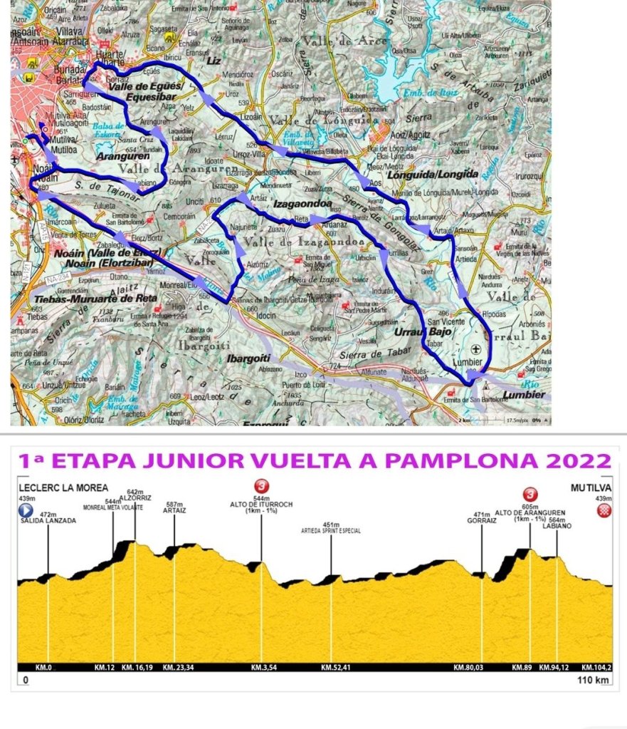 La primera etapa (26 de julio) saldrá del Leclerc en La Morea y finalizará en Mutilva. Serán un total de 110 km con la subida del alto de Iturroch y Aranguren. Saldrá a las 17.30 horas.