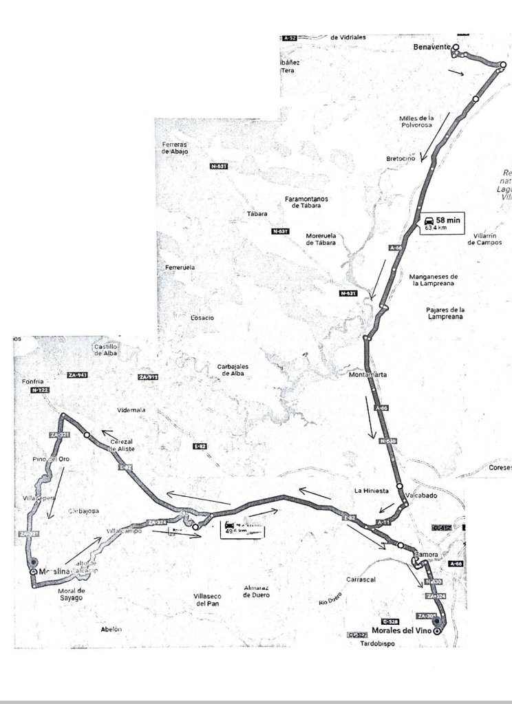 El itinerario alternativo circulará por la carretera N-630 entre Benavente y Roales del Pan, para luego continuar por el tramo de circunvalación de Zamora de la Autovía A-11 y seguir por la N-122 hasta el desvío hacia Pino del Oro, por el que continuará hasta Moralina de Sayago para regresar a Zamora a través de Villalcampo y concluir en Morales del Vino.