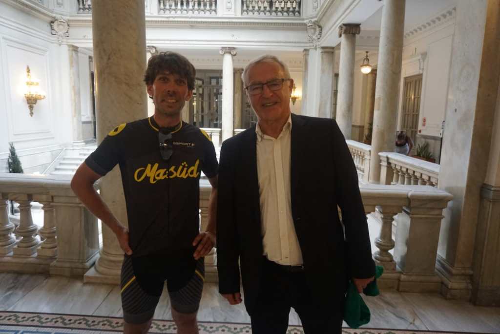 Después de cinco años trabajando en Holanda el joven benimassoter regresa a su pueblo pedaleando y afronta una última etapa que parte de València y en la que estará acompañado por amigos