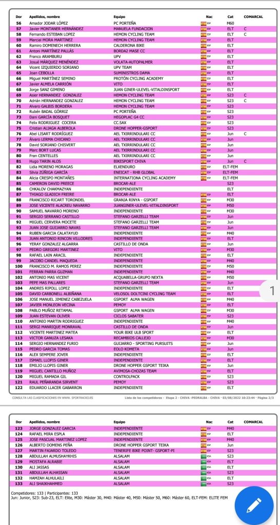 Etapa 2. Día 3 de agosto. Chiva-Chiva. 17 horas. 86KM +1200m