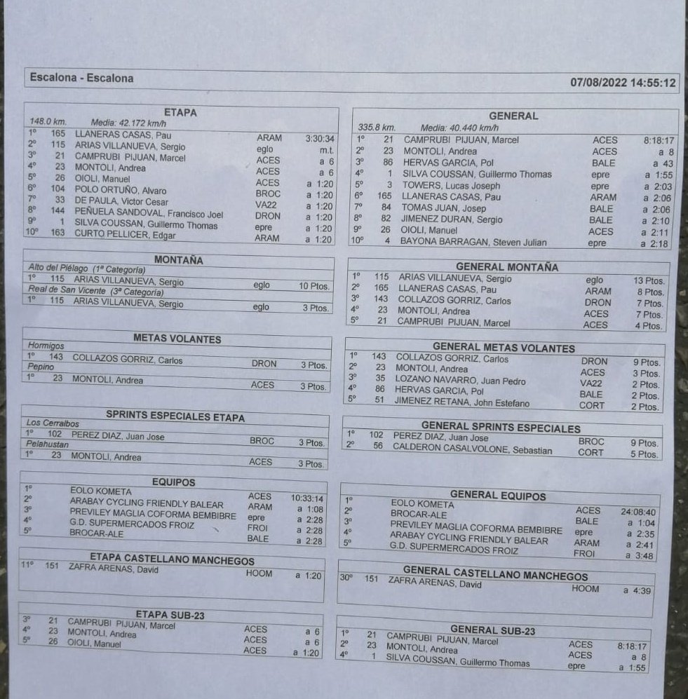 Carlos Collazos (Drone Hopper-GSport) se ha impuesto en las metas volantes; Juan José Pérez (Brócoli Mecánico-Sakata), en los sprints especiales; David Zafra (Hoomu Seguros), en la general manchega; con Sergio Arias llevándose la montaña, y con el propio Marcel Camprubí siendo el mejor joven y su equipo la escuadra más fuerte de la carrera.