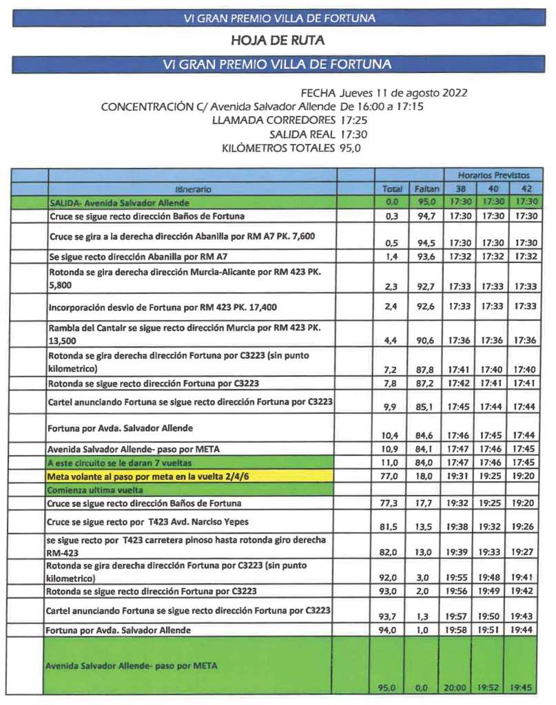 El jueves, día 11 de agosto, se disputa el GP Villa de Fortuna, categoría Open, que dará comienzo a las 17:30 horas y cuenta con 95 kilómetros de recorrido. Amplia representación alicantina en la prueba. Entre todos ellos los equipos Brocar Alé y Essax con algún componente, ademas de Abel Olivares, Joel Villaverde, José Javier Gil´, Raúl Granados y Antonio Lozano del Esetec; Miguel Juan (Manuela Fundación); Mario Granero, Josué Gómez y Jorrit Vanstraelen, de Drone Hopper; Iván Palomeque (Valverde Team); y Raúl Peñaranda y Quentin Le Corre, del Pemoy