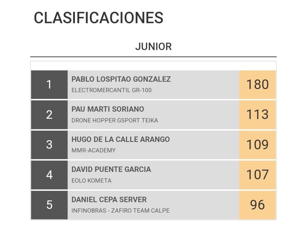 Pau Martí (Drone Hopper) finaliza segundo y Dani Cepa (Infinobras), quinto