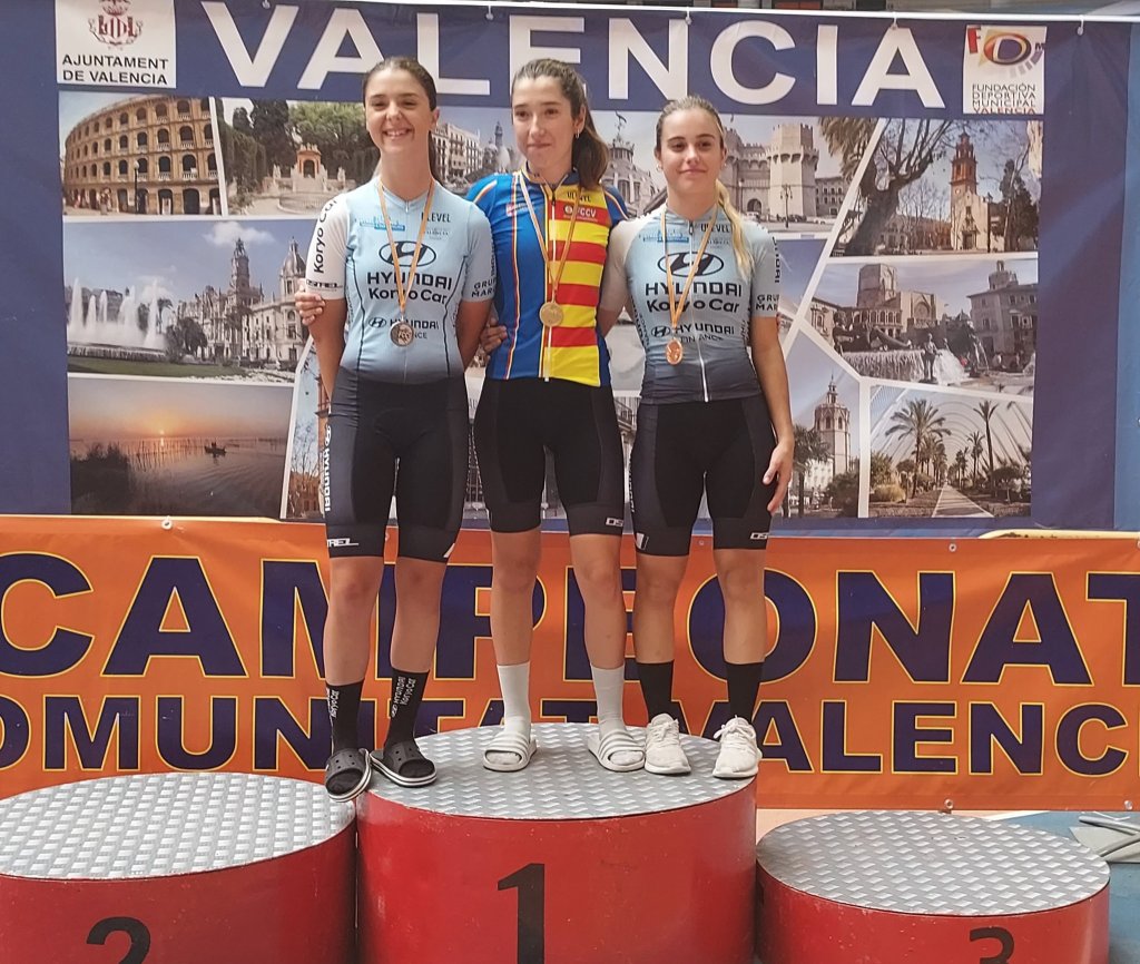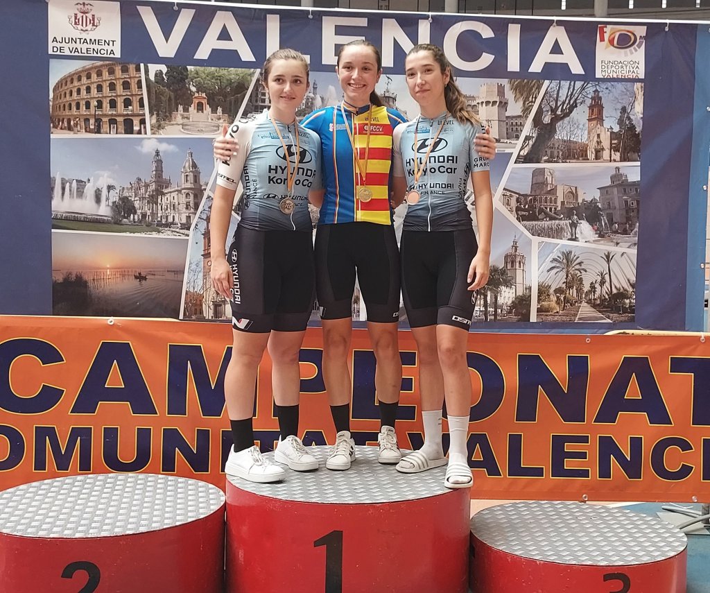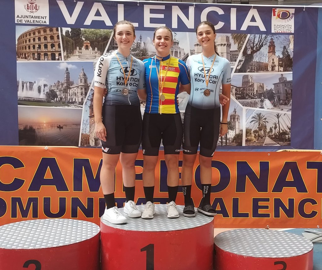 En féminas, el Hyundai-Koryo Car-Dstrel conseguía todo el botín. Daniela Grañana se llevaba los 500 metros, la Puntuación, la Persecución y el Scratch, su hermana Andrea, la velocidad, mientras que Vera Valero se imponía en la Eliminación y Leyre Toledo en el Keirin.