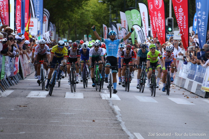 Vincenzo Albanese (Eolo-Kometa Cycling Team) ganó este viernes la cuarta y última etapa del Tour du Limousin-Périgord-Nouvelle-Aquitaine (2,1), disputada sobre 174,8 kilómetros entre Saint-Laurent-sur-Gorre y Limoges (Alta -Vienna). Superó a Alex Aranburu (Movistar), que se alzó con la clasificación general de esta 55ª edición. Sucede a Warren Barguil (Team Arkéa-Samsic) en la lista de ganadores de la prueba gala.