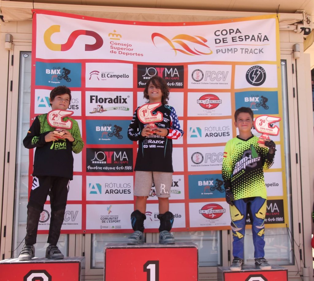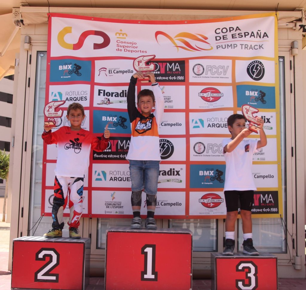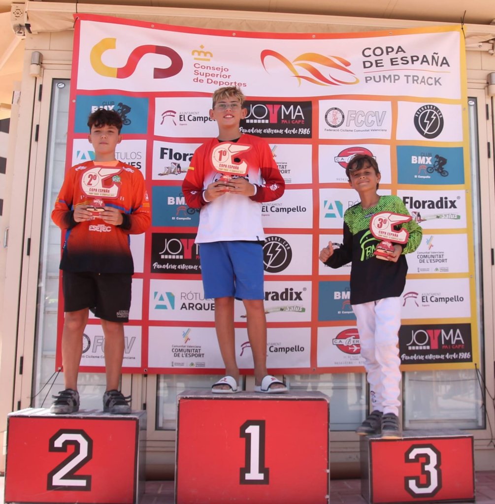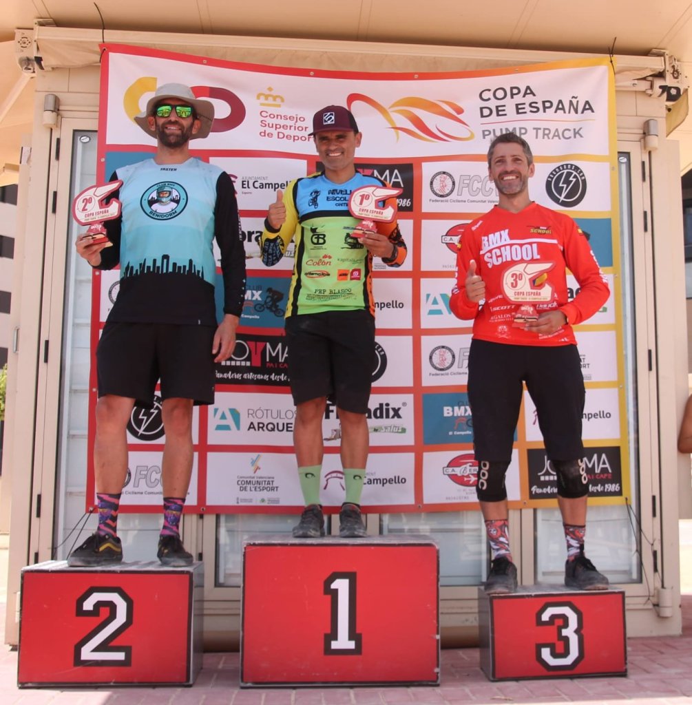 La tercera prueba de la Copa España de Pump Track ha reunido hoy en El Campello a los mejores especialistas de dicha modalidad. El mejor tiempo ha sido el marcado por el cadete Ángel Heras, por delante del campellero Fran Calvo, también cadete, y de Wannes Magdelijns. Organización perfecta del Club BMX El Campello en una matinal en la que los pilotos ha volado sobre el circuito desafinando a los peraltes y realizando todo tipo de saltos por un trazado muy atractivo, que ha hecho las delicias de los presentes. Ha quedado demostrado que no hay edad, ni nivel para este tipo de disciplina y que la diversión está asegurada.