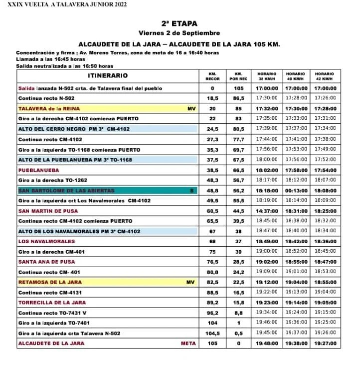 Etapa 2. Alcaudete de la Jara-Alcaudete de la Jara. Viernes, 2 de septiembre. 105Km. 17 horas