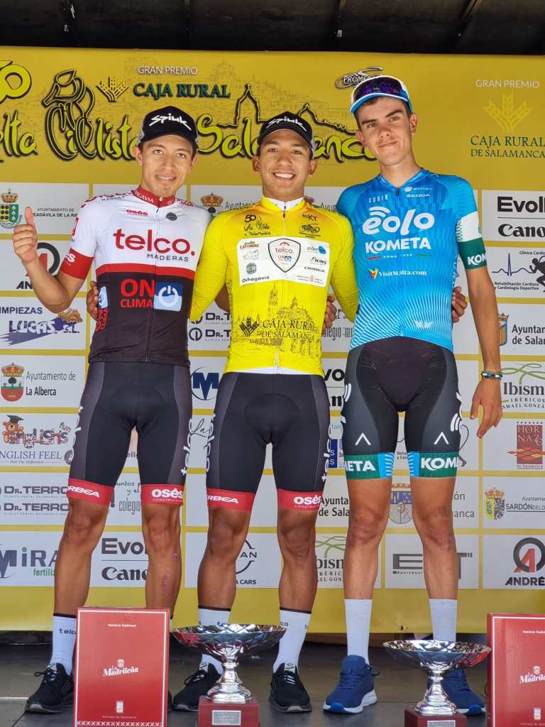 Alegría y satisfacción en las filas del Telco,m ON Clima Osés por conseguir la victoria final en la Vuelta a Salamanca. Una competición que sonríe en las dos últimas temporadas y en la que se han logrado sendos triunfos globales, gracias al buen hacer y a la motivación de todo el bloque. La jornada final disputada hoy, con victoria al esprint del uruguayo Thomas Silva (Previley), cerró la Vuelta a Salamanca con un gran triunfo en el duro esprint en la ciudad universitaria. Alejandro Gómiz (Froiz) fue quinto y Pol Hervás (Brocar), sexto. No provocó cambios en la general, donde Edgar Cadena subió al pódium con el maillot de líder de la general y Saúl Burgos le acompañó ocupando la segunda posición y Fernado Tercero (Kometa) ha completado el podio.