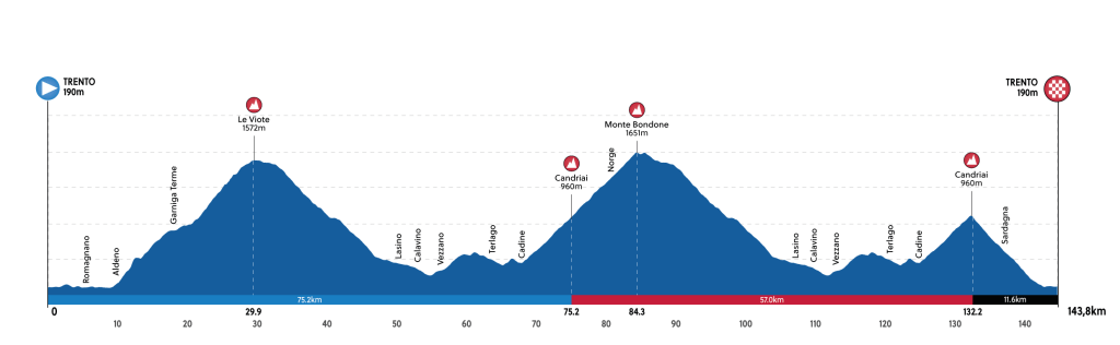 Trento – Trento Longitud: 143,8 kilómetros. Diferencia de altitud: 3.900 metros