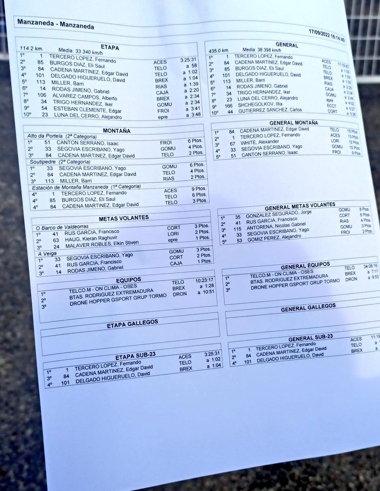 Fernando Tercero (Eolo-Kometa) se ha impuesto en la ascensión a la Estación de Manzaneda. Los ciclistas del Telco’m-ONClima-Òses, Saúl Burgos y Edgar Cadena, han entrado a continuación. Tercero se ha vestido de líder de la Volta a Galicia.