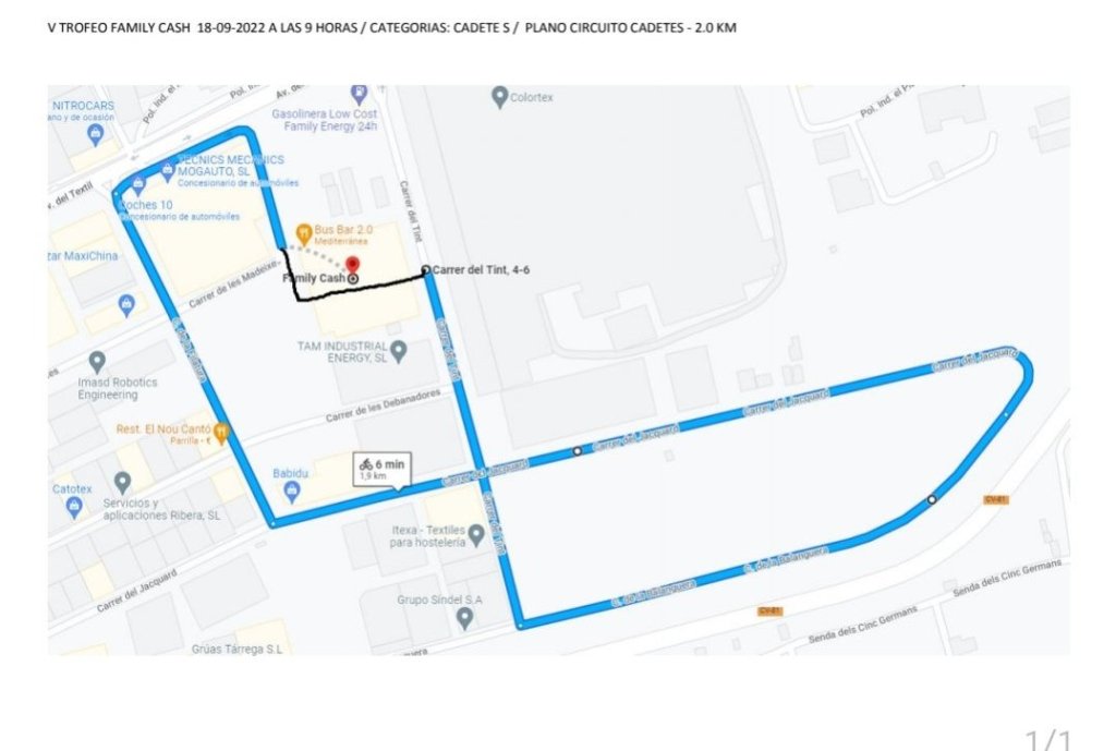 Hoy, a las nueve de la mañana, se correrá en Ontinyent el V Trofeo Family Cash para cadetes. Lista de inscritos.